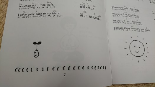 歩く瞑想から戻り、だーさんのギターでみんなで唄った歌とキルタンも。