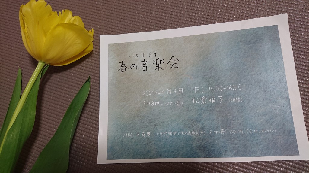 会場参加枠は満席です。当日オンライン配信(特別プレゼントあり)と後日アーカイブ配信もあります。当日展示されたアーティストの作品とご一緒に『春の音楽会』ーいろ 音 言葉ーをぜひ楽しんでくださいね。