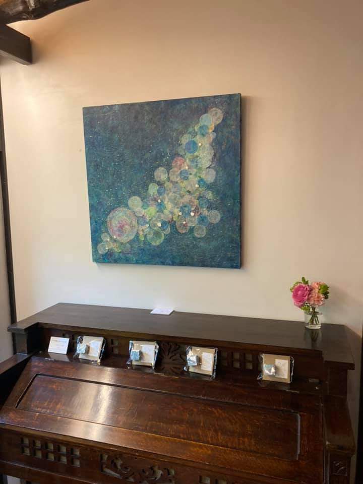 展示会会場を音楽会使用にセッティングし直して、直前まで音合わせやZOOM配信の準備をしたので、緊張してがちがちで始まりました。 先ずは自分を落ち着かせるため、センタリングとボディスキャンを会場の皆さんと一緒に行ない、呼吸と体に注意を向けて音の響きをありのまま受け取れるように準備して始まりました。