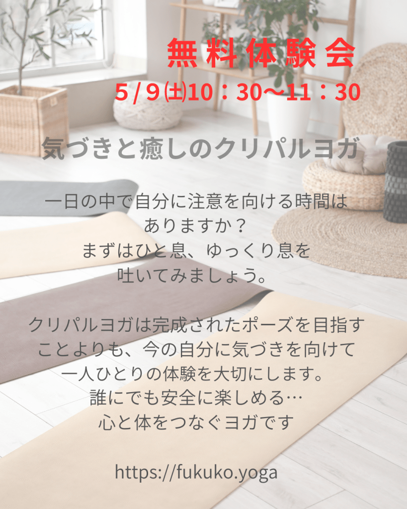 【気づきと癒しのクリパルヨガ】 ~今の私と出会う旅~